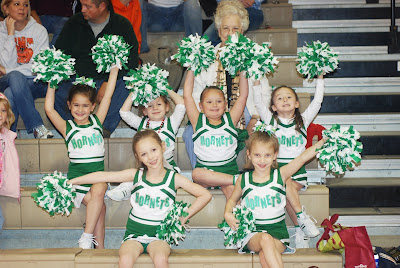 I believe I've mentioned before that I have been coaching a group of 9 pre-k and kindergarten girls for cheerleading this basketball season. Its been interesting, but the girls are a hoot. Each one of the girls are full of personality and I am so proud of each and every one of them.